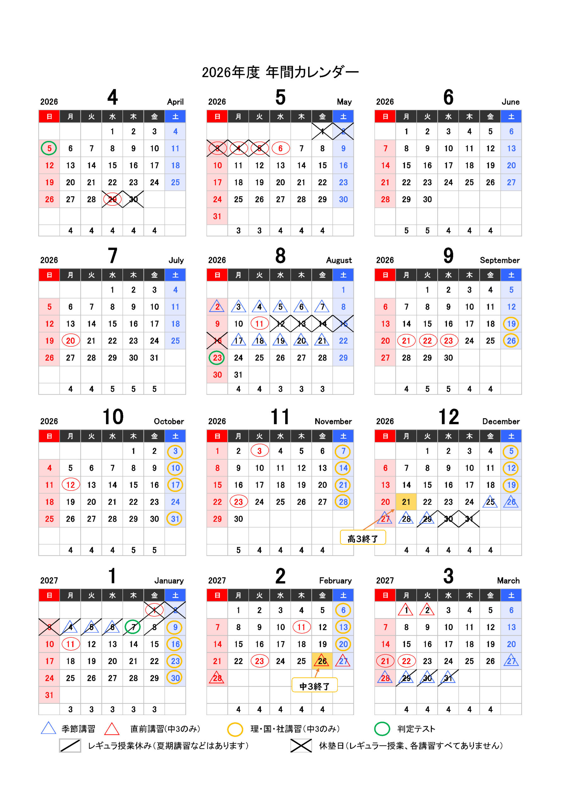 トップページ » 2026年度 年間スケジュール